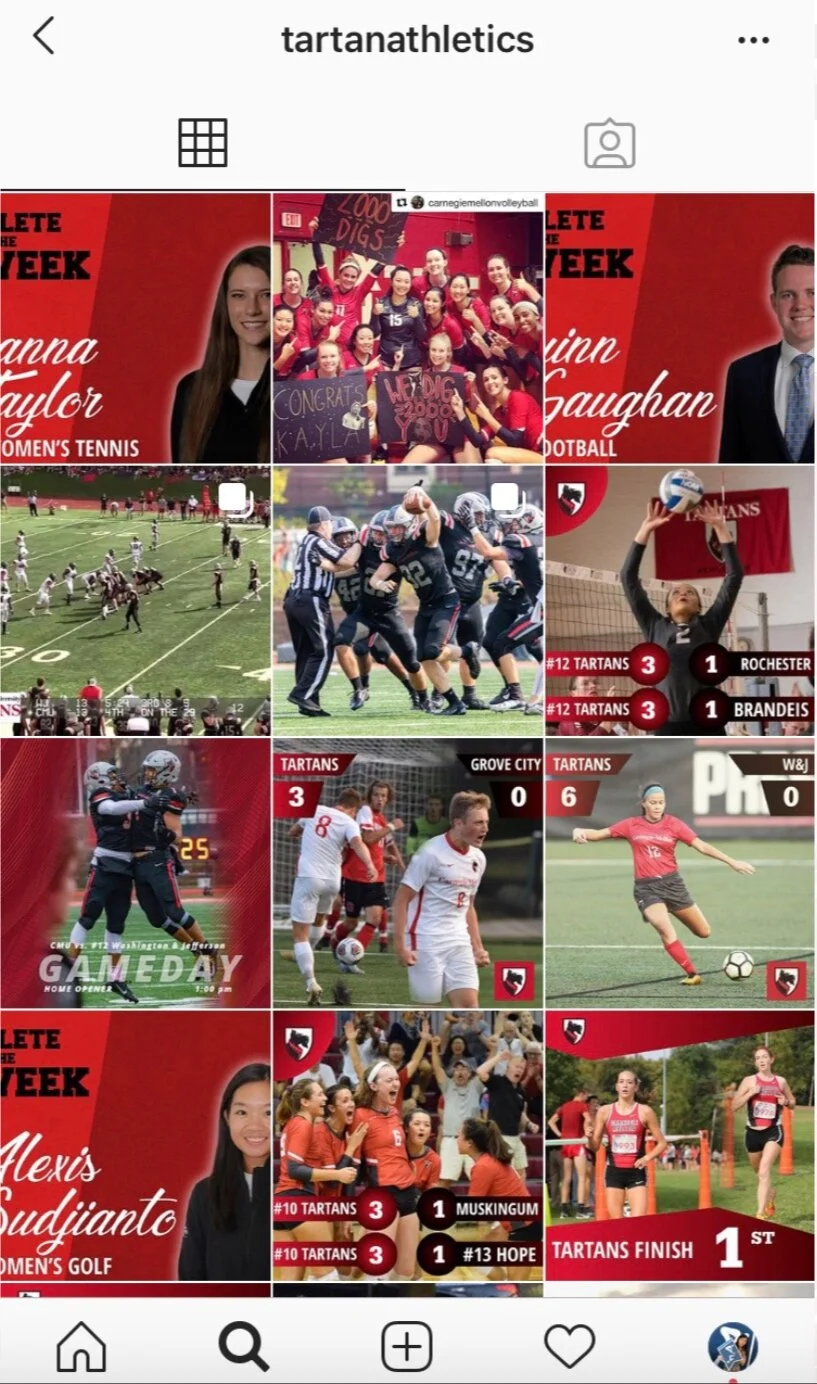 Produce content for CMU’s Atheltics Instagram and other promotional displays. Create templates for in-game and post-game graphics.