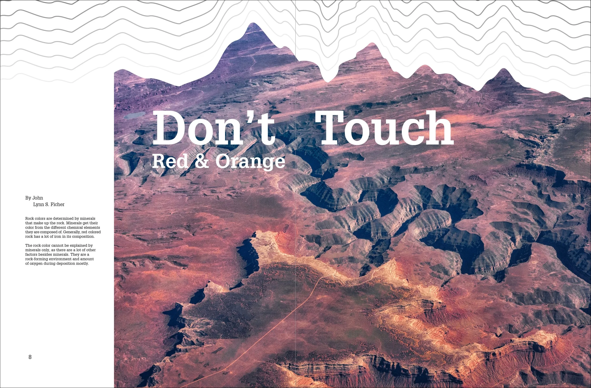 For this project, we were asked to pick a natural phenomenon and create a narrative using mostly pictures and a little bit of copy. I chose canyons as my phenomenal and wanted to explore what minerals cause the different colors in canyons while also including a bit about preserving the earth so others can see these beautiful canyons.