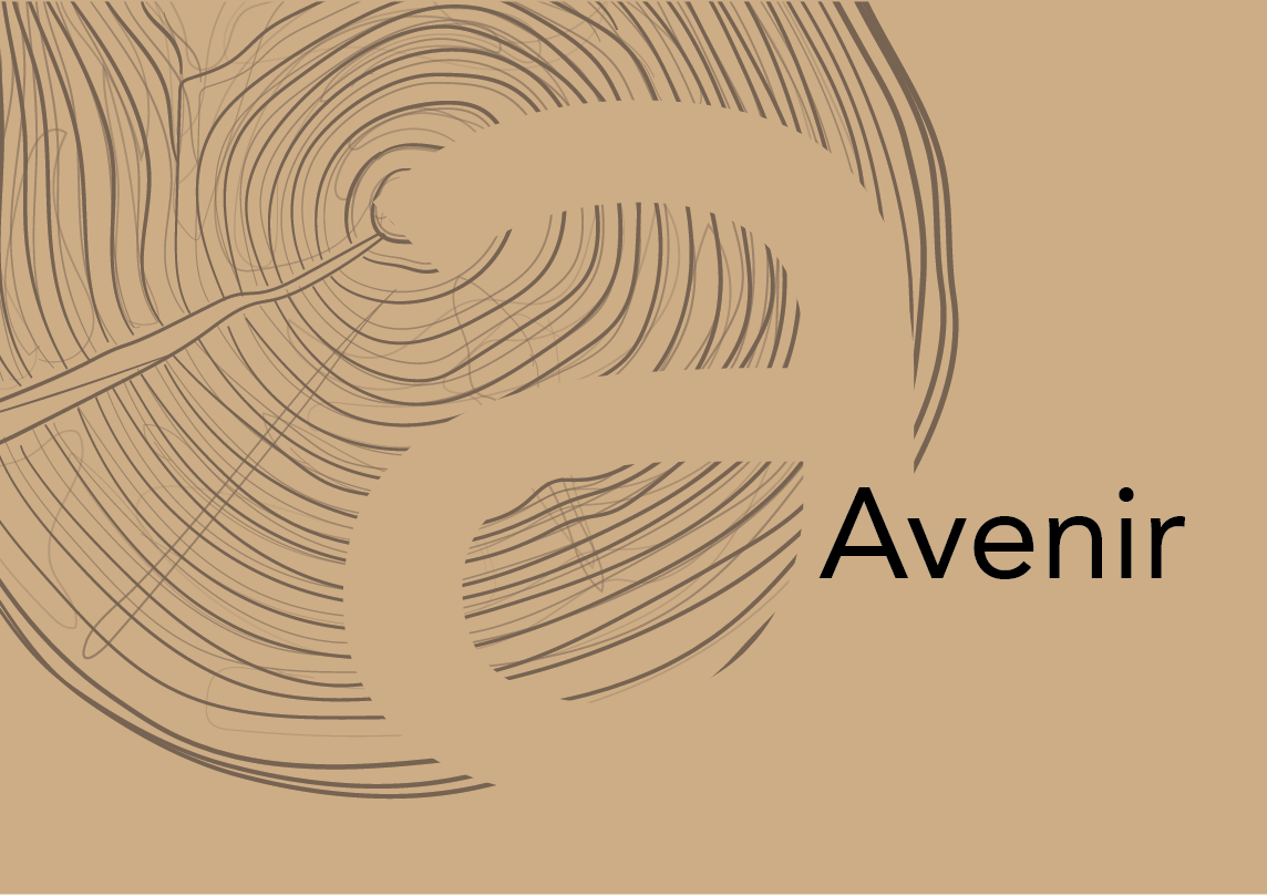 I decided to go with a grid of different colors and weights of Avenir because it is used widely for many different things (advertising, corporate identity, signage, etc). The wood ring is suppose to represent Frutiger's background in wood engraving.